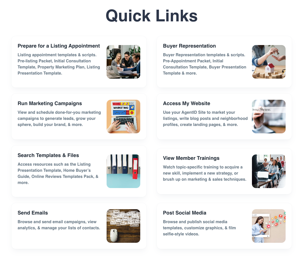 - *Access My Website* Customize your Free AgentID website! Post blogs! Create local Neighborhood Pages, Listing pages, Landing pages for Lead Gen, add Reviews, and more!