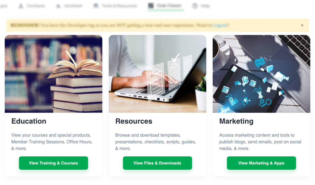 Bookmark the Dashboard URL so you never forget where to go to find your Marketing Club materials: https://dashboard.thepaperlessagent.com/