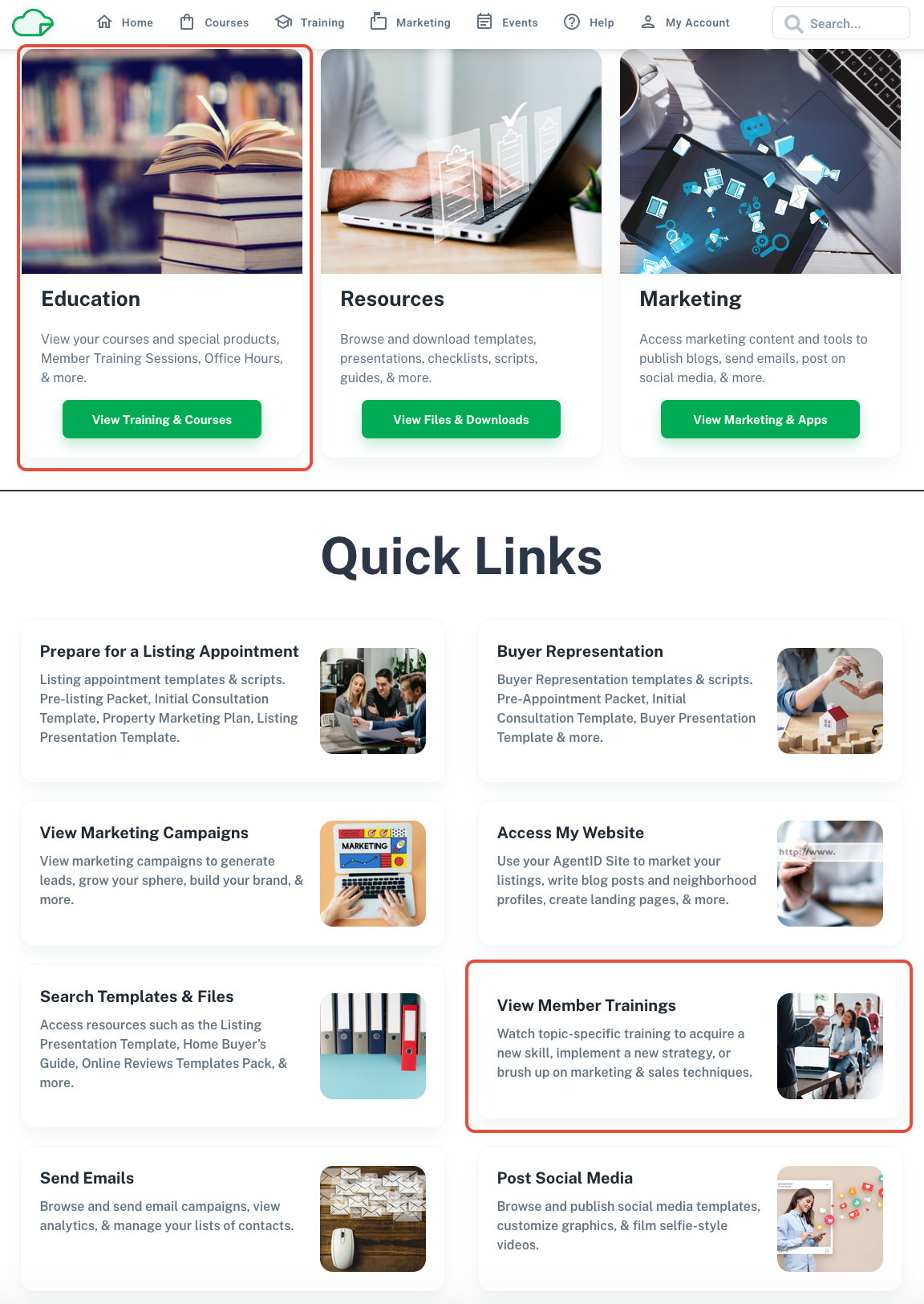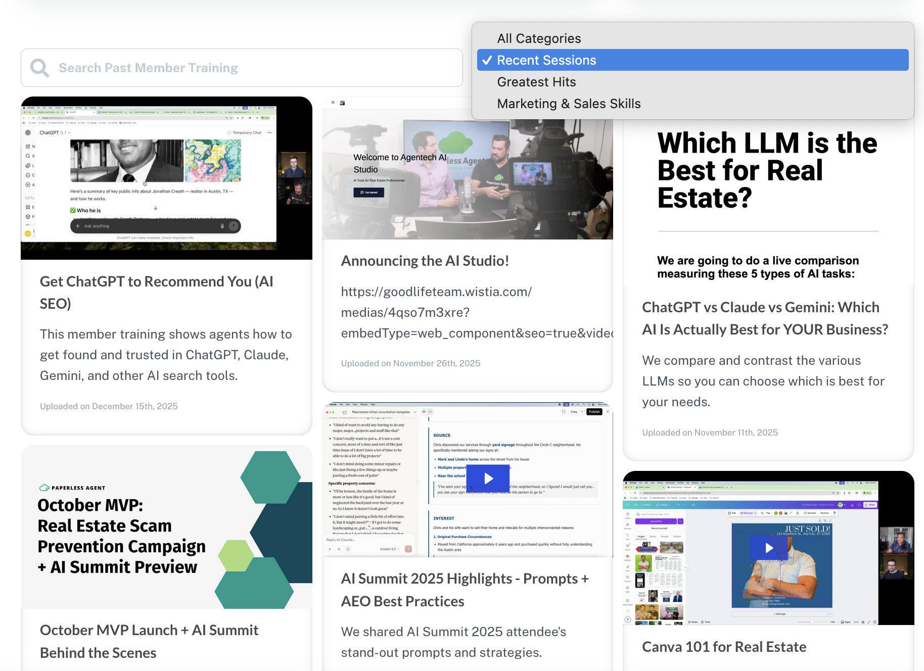Whether you’re looking for bonus courses you received as a courtesy or for signing up, trying to locate a template mentioned during a recent training, or wondering if we already have a resource that matches an idea you have, you’re not alone. With so much available inside your membership, it can sometimes be hard to know where to look. Below are a few simple ways to find your trainings, courses, templates, and resources so you can make the most of everything included in your account. Here's how you navigate the Paperless Agent Dashboard with ease.