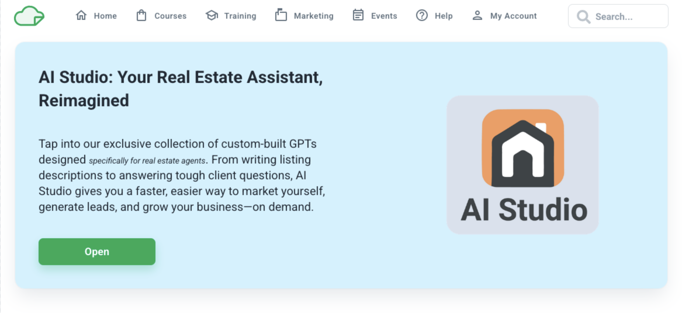 The AI Studio is a powerful tool designed to help real estate professionals leverage AI for marketing, content creation, and business efficiency. It provides access to ready-to-use AI features that simplify tasks like generating content for social media, newsletters, listing promotions, and more. The AI Studio is meant to help you save time, maintain consistency, and make the most of AI in your business.